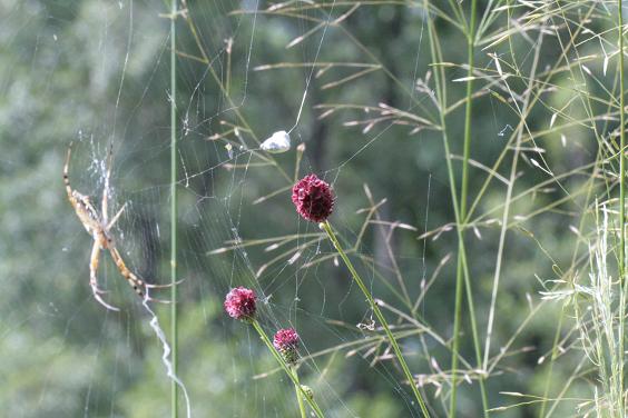 コメント:8月上旬から咲き始めている。花弁はなく赤紫のは萼です。