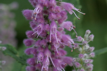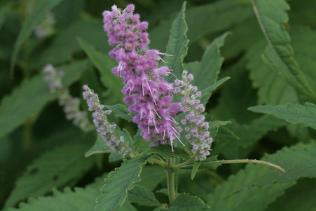 コメント:淡紫色の唇形の花を片側だけに密生して付けます。