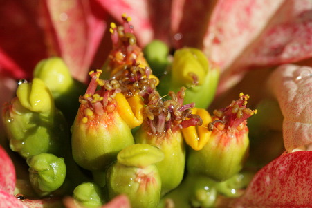 コメント:色づくのは苞で中心部に目立たない花がある。