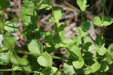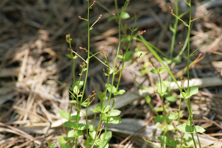 コメント:高さ10cm程度。葉は普通対生するが茎の上部ではときに互生し長さ1cm程度の卵円形。