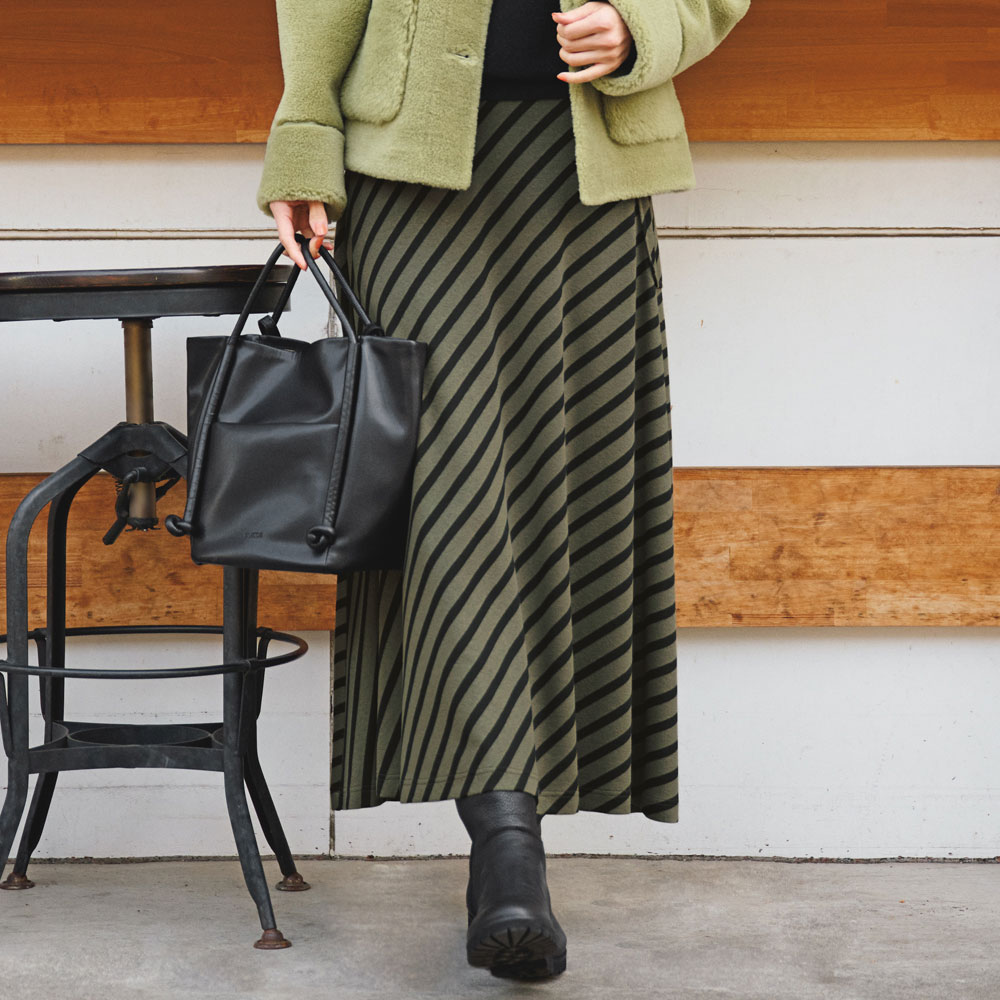 Winter RELAX STYLE冬の日がときめく、プレシャスな温もり外出が億劫な冬も、素敵な一着があればアクティブに過ごせる??。 身に纏えば気分も印象もアップする、温もり仕立てのデイリースタイルをご紹介します。 香ばしくスイートなピスタチオを薫らせて重い冬服にフェミニンな動きを添える、イタリア素材のジャカード編みスカートです。 ポイントは、ボリュームあるフレアをシャープに見せる斜めのストライプ。 編み地を贅沢に使い、前に接ぎを入れていないので、歩くたび柄行きが綺麗に波打ちます。 両脇のカーゴ風ポケットが絵になりやすさを後押し。 ページ下部に画像の説明がございます。 一部別売りの商品もございますので、説明文ご確認のうえご注文ください。 >画像の説明はこちら<仕様・サイズ■色:カーキ×ブラック■素材:表地…レーヨン55・ポリエステル41・ポリウレタン4%、裏地…ポリエステル100%■後ろ中心ホック・ファスナー開き■両脇2個ポケット付き■原産国:中国製(生地はイタリア製)■商品により、柄の出方が異なります。 ◆サイズ(cm)【S】スカート総丈 83ウエスト 69ウエスト(適応) 58ヒップ 110ヒップ(適応) 82重量(約g) -ベルト幅 3.5【M】スカート総丈 85ウエスト 73ウエスト(適応) 64ヒップ 112ヒップ(適応) 87重量(約g) 450ベルト幅 3.5【L】スカート総丈 85ウエスト 77ウエスト(適応) 69ヒップ 116ヒップ(適応) 92重量(約g) -ベルト幅 3.5【LL】スカート総丈 87ウエスト 81ウエスト(適応) 77ヒップ 120ヒップ(適応) 97重量(約g) -ベルト幅 3.5※商品によっては、中心サイズを参考重量として掲載しています。 【送料マーク:A】 この商品の販売価格には配送料880円(税込)が含まれています。 画像の説明コーディネート例 イタリア素材 バイアスストライプ フレアスカート プリント 柄スカート スカート A31702 \LINE友だち登録でクーポン/ 23,680 ~