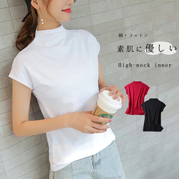 カットソー 黒 白 UV対策 ラッシュガード uvカット シワ隠し レイヤード おしゃれ インナー 袖短い ブラウス きれいめ 薄手 チュールトップス 首元保護 トップス tシャツ 春 チュール レディース 夏 ノースリーブ 2,340 ~