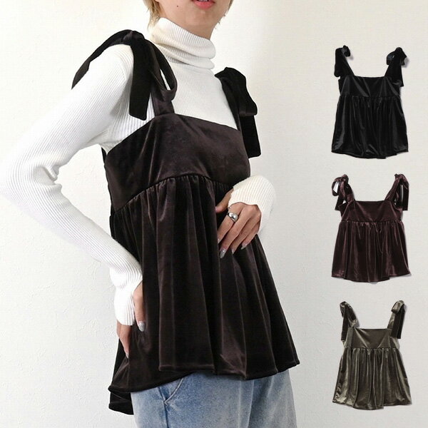 キャミソール ベロア リボン 無地 トップス レディース ブラウン カーキ ブラック 4,580 ~