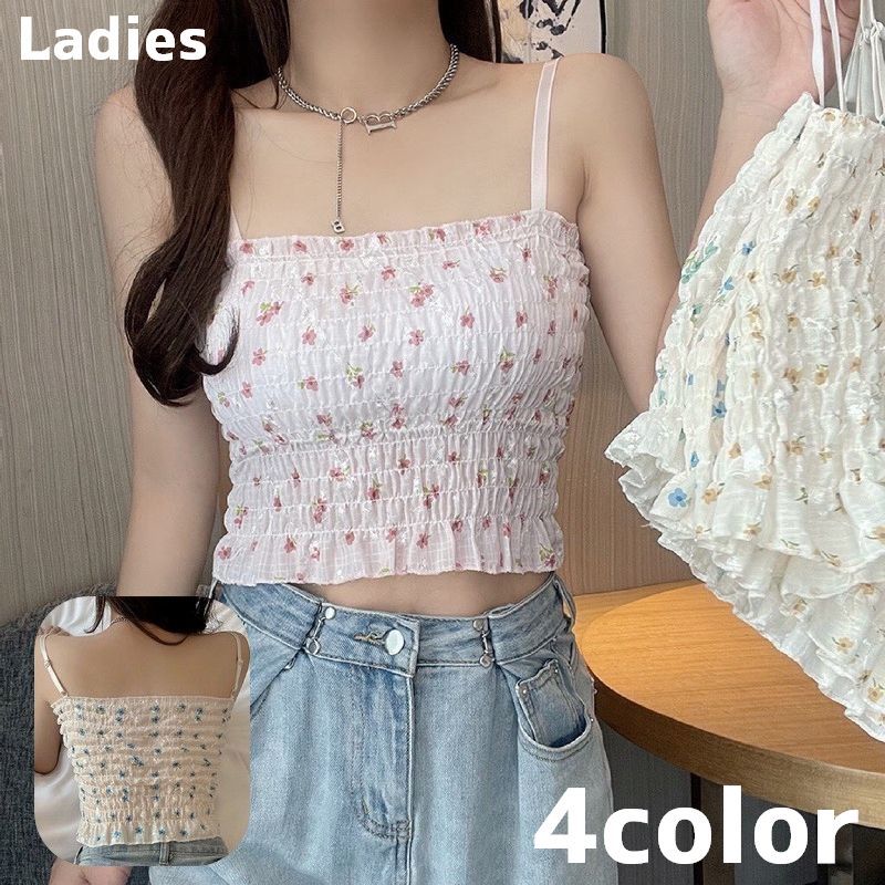 ショート丈のカップ付きキャミソールです。 シャーリングデザインがかわいい♪ そのまま1枚でも上にシャツなどを羽織っても、どちらのスタイルでも着用いただけます。 【サイズについて】 画像をご参照ください。 【カラーについて】 生産ロットにより柄の出方や色の濃淡が異なる場合がございます。 お使いのモニターや撮影時の光の加減などにより 画像と実際の商品のカラーが異なる場合もございます。 予告なしにカラーやデザインなどの変更がある場合もございます。 【素材について】 ポリエステル 【補足説明】 ※商品の性質上、手洗いでのお洗濯をお勧めしております。
