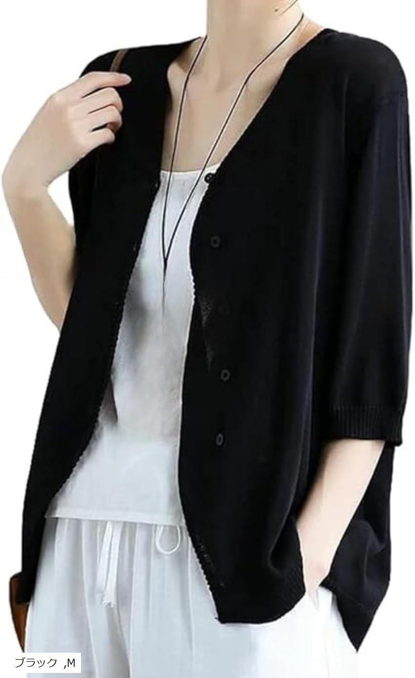 持ち運び簡単 冷房対策 カーディガン レディース 薄手 カーデガン 羽織 羽織り ゆったり uvカット 紫外線カット 春夏 夏服 (ブラック, M) 2,980 ~