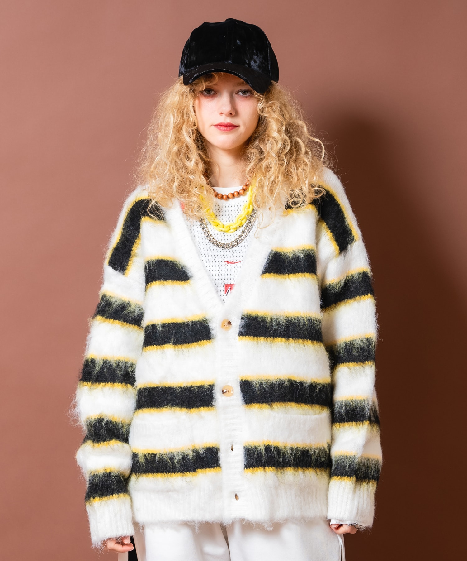 ファー混肉厚ニットワイドボーダーオーバーサイズカーディガン / ユニセックス 柄 ウールタッチ アンゴラタッチ vネック90s、Y2Kスタイル、古着ミックスやアメカジといったクラシックなムードのトレンドからも今期押さえておきたいカーディガン。 ザクっと羽織るだけでスタイリッシュかつレトロなムードを作れるvネックのオーセンティックなスタイル&メンズレディース問わずユニセックスに羽織れるダボっとしたオーバーサイズ/ビッグシルエットが今顔な一着。 インパクトたっぷりかつポップでレトロな空気感を奏でるワイドピッチの3トーンボーダー柄×毛足の長いアンゴラのような風合いのファーをたっぷりと表面にあしらいつつ、超肉厚の生地感とザクザクっとリズミカルに編み込んだ高級感溢れるウールタッチアクリル生地が一見してグッドムード。 カウチンニットのようなアウター感覚で冬場にも活用できる肉厚のマテリアルワークが冬の主役トップス間違いなしの一着。 韓国ストリートファッションをはじめとし、90s/Y2Kスタイル、古着ミックス、アメカジやワークスタイルなどのクラシックムードなスタイルはもちろん、スケーター、ストリートスタイル、グランジといったカジュアル全般、さらにはモードスタイルやキレイメなどのハズシアイテムやアクセントとしても◎『カラー』ホワイト×ブラック / 白黒ブラック×イエロー / 黒黄【a.p.o.v. / エーピーオービー】a point of view...[日本人の視点]からセレクトする『韓国ストリートファッション』がコンセプト。 韓国ストリートで日々更新されてゆくトレンドの移り変わりを眺めながらぼんやりと視点を合わせて国内外問わずにセレクト。 ぼーっと韓国ストリートシーンからインプット、日本人視点でアウトプット。 ■サイズ■onesize着丈:61身幅:61.5そで丈:52.5肩幅:56.5■素材■アクリル:100%■カラー■ホワイト×ブラック / ブラック×イエロー■モデル■174cm166cm a.p.o.v. ファー混肉厚ニットワイドボーダーオーバーサイズカーディガン / ユニセックス 柄 ウールタッチ アンゴラタッチ vネック 18,990 ~