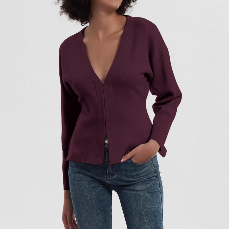 カーディガン レディース ニット 春秋 長袖 ショート丈 スリム 韓国風 レトロ トップス 黒 白 赤 紫 4,714 ~