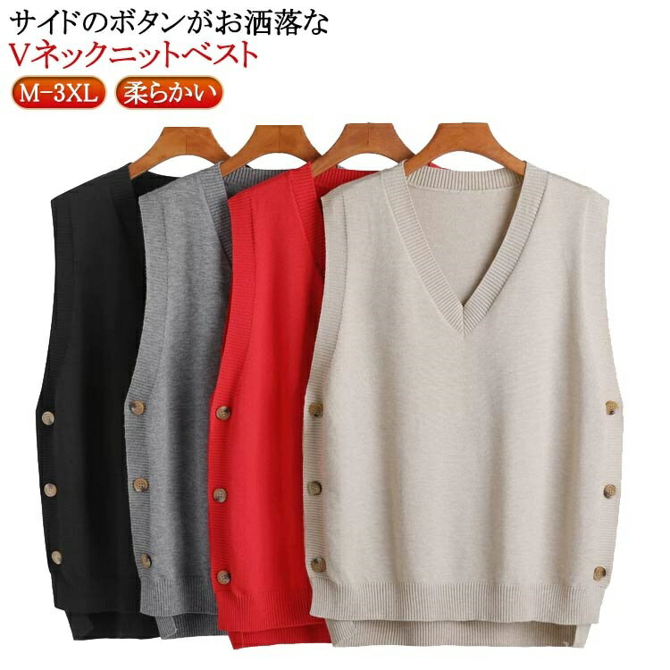 【送料無料】ゆったり シンプル レディース ノースリーブ 秋 冬 ニット ベスト 無地 きれいめ ニット 春 トップス Vネック 半袖 トップス 2,592 ~