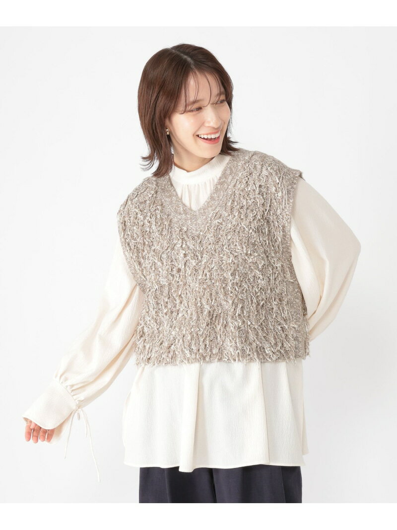 【デザインポイント】デコルテがすっきり見えるVネックライン。 表面がふんわり起毛しており、季節感のあるデザインです。 プルオーバーとしても、レイヤードアイテムとしてもお召しいただけます。 【スタイリングポイント】今の時期はTシャツやタンクと重ね着していただくと、季節感のある着こなしが楽しめます。 涼しくなってきたら薄手のタートルやロンTをレイヤードしても素敵です。 ボトムスはパンツでもスカートでも合わせやすい丈にデザインしました。 【素材ポイント】軽くてチクチクしにくい、ふんわりした肌さわりが特徴です。 【仕様】・ポケット数:前×2※照明の関係により、実際よりも色味が違って見える場合があります。 また、パソコン・スマートフォンなどの環境により、若干製品と画像のカラーが異なる場合もございます。 【製品寸法】●製品寸法:02(M):着丈59cm B98cm 肩幅43cm備考:【素材】ポリエステル100%02(M) : 【着丈】59cm / 【肩幅】43cm / 【胸囲】98cm別カラーはこちら! グレー(ライトグレー(011)) グレー(グレージュ(050)) デッサン Dessin 【洗える】Vネックシャギーベスト (ネイビー(094)) 5,533 ~