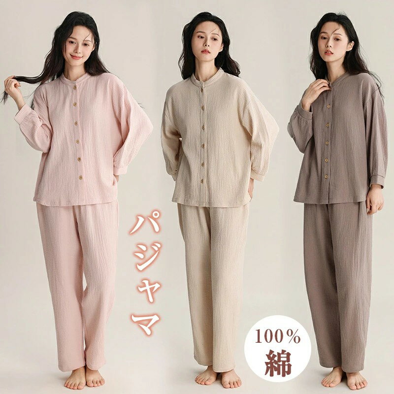 【最大2000円OFF】パジャマ レディース 綿100% 長袖 春夏 春 ダブルガーゼ ルームウェア ナイトウェア 寝巻き 上下セット トップス ボトムス カジュアル ゆったり 無地 2点セット 母の日 ギフト 軽量 女性用 体型カバー 無地 快眠 お泊り 海外旅行 高級 3,980 ~