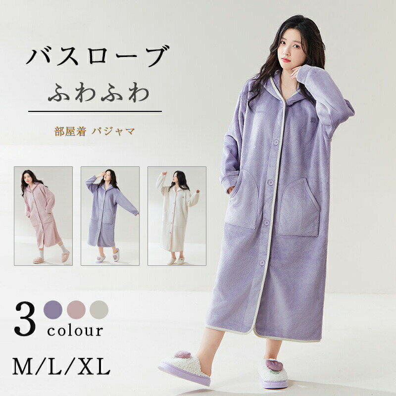 着る毛布 バスローブ レディース ワンピースパジャマ もこもこ ナイトガウン 前開き フード付き ロング丈 速乾 暖かい ガウン ワンオペ 育児 部屋着 長袖 大きいサイズ あったかい ルームウェア ギフト プレゼント クリスマス ゆったり ボタン付き 4,250 ~
