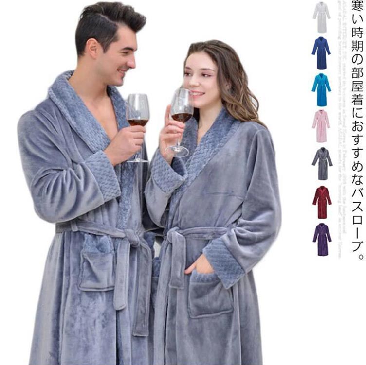 バスローブ 男女兼用 ルームウェア ペアパジャマ レディース メンズ 速乾 ペアガウン バスタオル お風呂上がり フランネル 生地 部屋着 上着 もこもこ あったか バスドレス パジャマ 前開き 長袖 ナイトウェア リラックスウェア 無地 秋 冬 3,880 ~