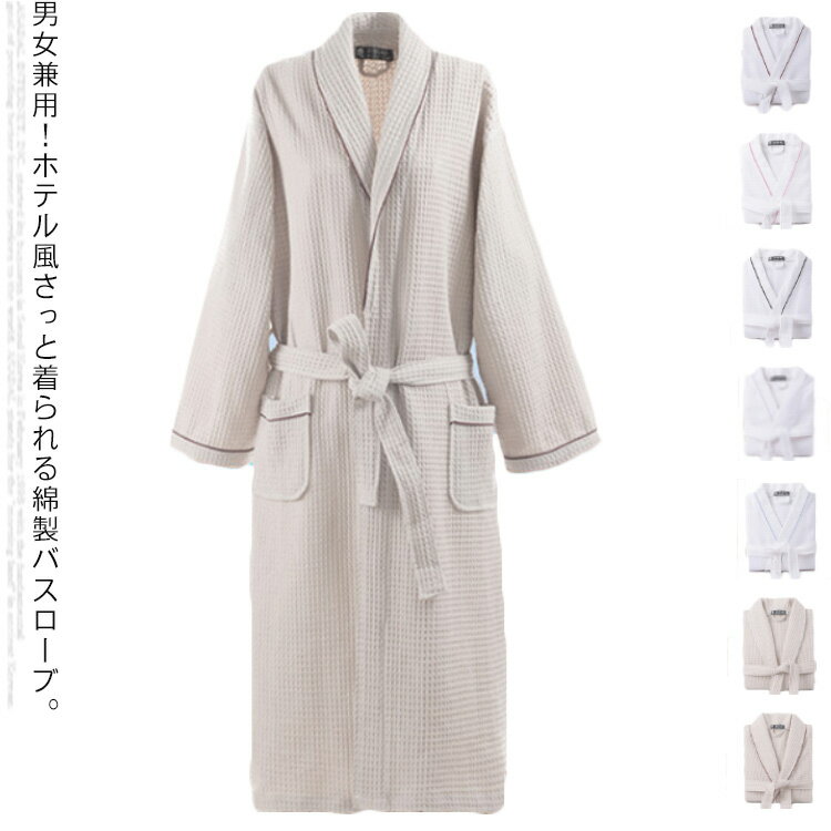送料無料 6色 バスローブ ガウン ワッフル生地 男女兼用 レディース メンズ 春夏秋 薄手 部屋着 お風呂上がり ルームウェア ボディタオル パジャマ ミモレ丈 ロング丈 腰ベルト付 3,140 ~