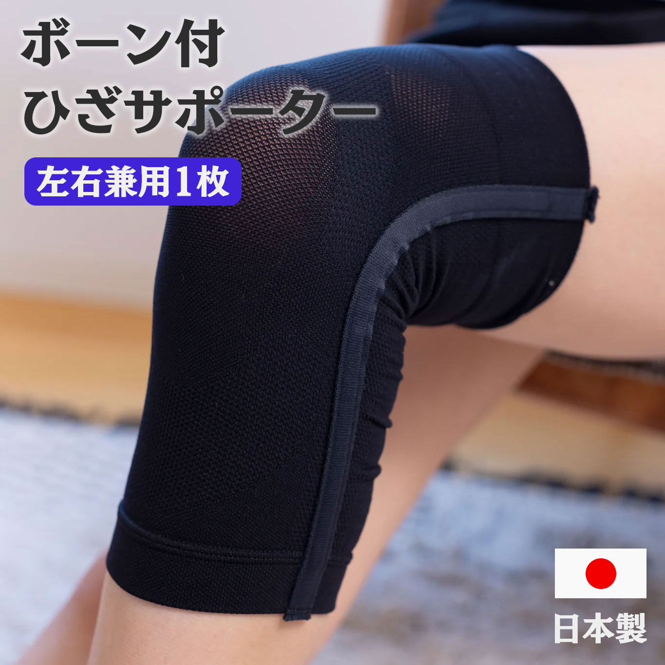 商品情報商品内容左右兼用1枚サイズMサイズ(36cm~39cm)、Lサイズ(39cm~42cm)、 LLサイズ(42cm~45cm)素材ナイロン、ポリウレタンボーン付ひざサポーター らせん構造で編立されたサポーターの為伸縮性は抜群。 更に両側面を支える様にコイル状ボーンを添えることで足の曲げ伸ばしを阻害することなく、足の蹴りだしを補助します 長年の製造の編立技術を応用して作られたひざ用サポーターです。 ひざの関節は、歩く時や立ち上がったり座るときに負担が大きくなってしまいます。 快適な生活を送るためにも日常からケアするためのひざサポーターです。 らせん構造で編立されたサポーターの為伸縮性は抜群で、しかもフィット性にも優れています。 更に両側面を支える様にコイル状ボーンを添えることで足の曲げ伸ばしを阻害することなく、足の蹴りだしを補助します。 しかも、ひざサポーターのズレもボーンで支えることで極力少なく抑えております。 履き口もゆったり伸びる構造にしておりますので、締め付けられて窮屈になりにくい編立方法を採用しております。 更に着用時には、はき口内側に「サイズとマエ、上」の表示を分かりやすく配置することで着用時にどちらが前で上なのか迷わない様になりました。 5 ボーン付ひざサポーター 1,500 ~