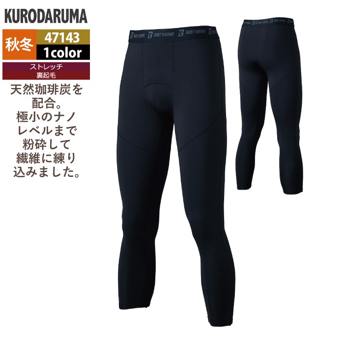 商品仕様・説明 【47143 アンダーパンツ】 ◇メーカー:クロダルマ ◇秋冬用 ◇素材:表/ポリエステル90%・ポリウレタン10%(ベア天裏起毛) 目付160g/m2 ◇機能:ストレッチ・裏起毛 ◇サイズ:M・L・LL・3L ◇カラー:ブラック 【詳細】 ◇HARDな現場を支える一着。 ◇天然珈琲炭を配合。 ◇極小のナノレベルまで粉砕して繊維に練り込みました。 ◇天然珈琲炭が持つ驚きのパワー・遠赤外線×強力消臭 ◇生地だけではなく・肌の温度も適度に上昇します。 ◇強い消臭効果を持ち四大悪臭を分解消臭します。 ◇珈琲炭をナノ処理して再利用することで資源の浪費を削減します。 COLOR カラー DETAIL 商品詳細 SIZE サイズ SERIES シリーズ ご利用のパソコン環境によって、実物と色合いがやや異なって見えることがあります。 同メーカーの同じ色名でも、シリーズが違うと色合いが異なる場合があります。 上下でご購入の場合は、同シリーズの商品よりお選びください。 ページ内の情報はカタログ初出時のものです。 予告なく商品仕様・細部名称の変更がある場合があります。 47141 長袖アンダーレイヤー 47142 長袖Vネックアンダーレイヤー 47144 ネックウォーマー 47145 ウエストウォーマー 47146 バラクラバ 商品は全てメーカーよりお取り寄せ致します。 ご注文欄の表示に関わらず、在庫欠品している場合がございます。 CUSTOMIZE カスタマイズ この商品のサイズ違いはこちらから サイズをクリックすると該当ページへ移動します 3L クロダルマ 作業服 インナー 秋冬用 47143 アンダーパンツ M-LL 1,593 ~