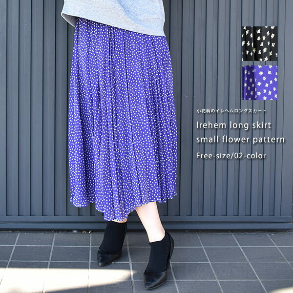 レディース ファッション Buzz-ex 新品 コンビニ受け取り 新作 プチプラ ぷちぷら ワンピース バッグ アクセサリー トレンド 春 夏 秋 冬 新作毎日★動きのある揺れるシルエットが軽やかな小花柄プリントスカート★ ドット風の小花プリントが大人ガーリーなロングスカート。 ランダムなプリーツ加工とアシンメトリーの裾ラインが さり気なくオシャレに見せてくれます。 ポリエステル製のシボ感のあるクレープ生地を使用しており、 エアリーで動きのあるスタイルに。 ウエストは総ゴム仕様で内側に紐付き、 裏地も付いているので気になる透け感も安心です。 フリーサイズ、07ブラック/94パープルの2カラー展開です。 身長別で着用してみました♪ 155cmのスタッフが着用してみました。 160cmのスタッフが着用してみました。 165cmのスタッフが着用してみました。 くるぶし上10cmくらいのロング丈 ウエストゴムで穿き心地がラク ふくらはぎの真ん中くらいのミモレ丈 商品の詳細 実寸サイズ サイズ…FREE 着丈…約78cm〜86cm ウエスト…約64cm〜(ゴム仕様) 裾幅…約115cm 素材 表地/ポリエステル 100% 裏地/ポリエステル 100% 伸縮性|□あり □若干あり ■なし 裏 地|■あり □なし 透け感|□あり ■多少あり □なし 着用モデルデータ モデルサイズ|身長…158cm 生産国 中国 ※ご注意※ ●屋外にて撮影した写真は、実物と色合いが 異なって見える場合もございます。 商品の写真は実物の色に近づけるため、 加工している場合もございます。 ●安価でのご提供のため、細部にわたり若干縫製の 乱れなどがある場合がございます。 また、商品の特性上、生地の取り位置により、 柄の出方やニュアンスなど、多少の個体差が生じ 画像と表情が異なることがございます。 ●柄の縫い合わせが揃っていないことがございます。 また、総柄商品におきましては、生地の取り方により、 柄の位置や向きが商品画像と異なる場合がございます。 予めご了承の上、お買い上げ下さいますよう よろしくお願い申し上げます。 ●お客様がお使いのモニターによっては 色の見え方に違いが生じる場合がございます。 予めご了承の上、ご確認をお願い申し上げます。 ●素材・染料の性質上、色落ちする場合がございます。 なるべく他の物とは分けて洗い、漂白剤のご使用はお避け下さい。 また、タンブラー乾燥のご使用はお避け下さい。 お洗濯後は濡れたまま放置しないで下さい。 お洗濯の際にはネットのご使用をお勧め致します。