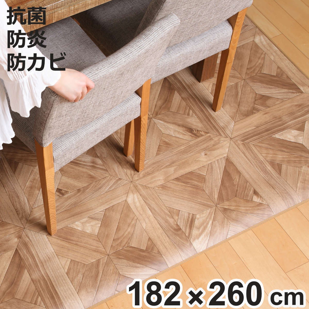 サイズ約 横182×縦182(cm)厚さ:約 0.18(cm)内容量1枚材質表面:塩ビ100%中間:塩ビ発泡層裏面:ガラス基材種類ブラウン、アイボリー、ウッドブラウン生産国日本製床暖房/ホットカーペット非対応滑り止め加工なし注意事項※商品ページ内には別の商品を含む画像を使用しています区分返品・キャンセル区分(不可)ラグ ダイニングラグ 木目調 182×182cm 防炎加工 撥水加工こちらは「182×182cm」の販売ページです。 ※ページ内には同シリーズのサイズ違いの画像が含まれます。 おすすめポイント床材をしっかり守る椅子を引くときにできる擦り傷や、物を落としたときのへこみ、ペットのひっかき傷からなどから大事な床材を守ります。 特に、毎日の椅子の出し入れがあるダイニングテーブル下にピッタリのラグです。 防炎加工で万一のときも安心マッチやライターなどの小さな火種に触れても、燃え広がりにくい防炎加工が施されています。 火災の拡大や火災事態を未然に防ぐことができるので、防炎物品の使用が義務付けられている高層マンションや高層ビルにもおすすめです。 撥水加工でサッと拭き取り表面には水が染み込みにくい塩化ビニル素材を使用しています。 飲み物や食べ物をこぼしてしまってもサッと拭き取ることができます。 商品詳細嬉しい抗菌・抗ウイルス付きお部屋を快適にする抗菌・抗ウイルス加工付きです。 小さなお子様やペットのいらっしゃるご家庭も安心してお使いいただけます。 お部屋に馴染む柄フローリングやインテリアに合わせやすい柄展開です。 1枚敷くだけでお手軽にお部屋のイメージを変えることができます。 いろんな場所で使える 182×182cm4人掛けのダイニングテーブル下をカバーしてくれるコンパクトなサイズです。 リビングではセンターラグとしてもお使いいただけます。 厚さラグの厚さは約1.8mmで、段差につまづきにくい安心設計です。 掃除もしやすいお掃除が楽ちんな毛足のないサラサラとした表面です。 拭き掃除はもちろん、掃除機も掛けやすくなっています。 コンパクトなサイズでお届け折りジワが付きにくいロール状でお届けします。 到着直後は巻きグセがありますが、ラグを広げて数日置いていただくと徐々に目立たなくなります。 床面にやさしい裏地裏面は床材にやさしいサラっとした素材が使われています。 また、ラグの角は丸く仕上げられているので反り返りにくいのも特徴です。 カラーご注意点サイズ違い182×130cm(2人掛けダイニングテーブル下に)182×182cm(4人掛けダイニングテーブル下にちょうどいい)182×230cm(4人掛けダイニングテーブル下にゆったり使える)182×260cm(椅子を引いてもカバーできるファミリー向け)182×300cm(6人掛けダイニングテーブル下にゆったり使える)関連キーワード:オールシーズン おしゃれ オシャレ お洒落 傷 キズ 防止 コンパクト フローリング ペット 子ども 食べこぼし 飲みこぼし 犬 猫 安心 安全 介護 国産 丈夫 カーペット 正方形マット アクセントマット おすすめ オススメ 182cm 182 LH14202 LH14233関連商品はこちらラグ ダイニングラグ 182×182cm 防炎8,280円ラグ ダイニングラグ 木目調 182×230c9,280円ラグ ダイニングラグ 木目調 182×300c10,780円ラグ ダイニングラグ 木目調 182×260c9,980円ラグ ダイニングラグ 木目調 182×130c7,180円ラグ ダイニングラグ 182×300cm 防炎10,780円ラグ ダイニングラグ 182×260cm 防炎9,980円ラグ ダイニングラグ 182×230cm 防炎9,280円ラグ ダイニングラグ 182×130cm 防炎7,180円ラグ 182×182cm ラグマット ダイニン8,380円ラグ 182×182cm ラグマット ダイニン8,380円ラグ 182×182cm ラグマット ダイニン8,380円 ラグ ダイニングラグ 木目調 182×182cm 防炎加工 撥水加工 ( 撥水 拭ける 木目 マット フロアマット 正方形 抗菌 防カビ 防水 防炎 日本製 リビング ダイニング 子ども部屋 耐久性 )【3980円以上送料無料】 8,280 ~