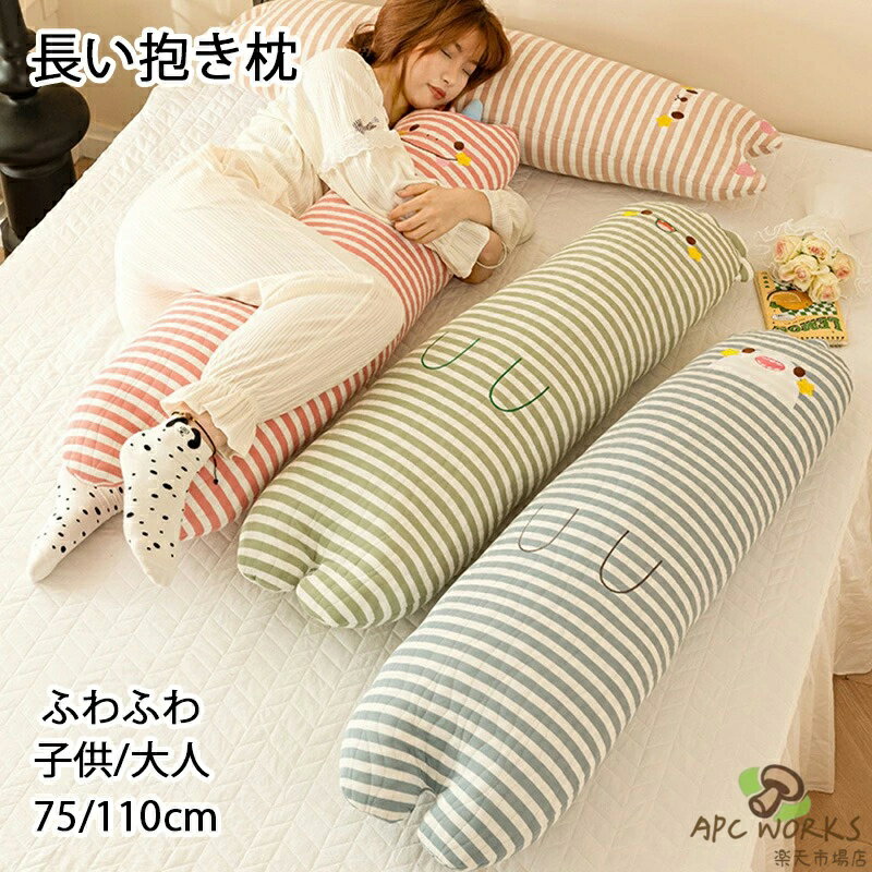 ※商品情報 カラー:ブルー、ピンク、グリーン、ブラウン 材質: ポリエステル サイズ:約75cm、110cm、140cm 【赤ちゃん用Aランクポリエステル】Aランク繊維は普通の大人使用の肌触り綿より更に高級安全な素材。 肌の弱い方や赤ちゃんにも安心してご使用いただけます。 【吸湿・速乾・通気!】通気性と吸水速乾性の高い素材を使用して、通気性が優れています。 汗をかきやすい夏でもさらっとして快適にご使用いただけます。 【多機能】ちょっとした睡眠のためのお昼寝枕、旅行時の枕、クッション、抱き枕、車のクッションなどに最適です。 妊婦期のむくみ防止のための踏み台やサイドサポートとしても使え、産後の授乳に便利なバッククッションとしても対応できます。 【お手入れ簡単】抱き枕のカバーは取り外して洗えるので、内部の詰め物がバラバラになる心配がありません。 詰め物は独立したインナーライナー設計なので、枕のカバーを外しても元の形を保ち、バラバラになりません。 また、再装着もより簡単にできます。 【可愛い抱き枕】見た目が可愛く思わず触りたくなるんぬいぐるみ。 抱きやすいサイズ感で癒しと落ち着きを与えてくれます。 萌え萌えな顔は誰が見ても好きになるでしょう。 【プレゼント】年齢に関係なく、子供、女の子、男の子、友達、お誕生日、子供の日、バレンタインデー、ハロウィーン、感謝祭、イースターの日、クリスマスなどへのプレゼントとしては、いい贈り物です。 ※ご購入頂前にかならずご確認下さいませ。 ※商品ページに記載のサイズと商品タグに記載のサイズは、採寸方法の違い(ヌード寸法・製品寸法)により表記が異なる場合がございますので予めご了承下さい。 ※お使いのスマホの画面やパソコンのディスプレイにより、実物とは色合いや色の濃淡が異なって見える場合がございますのでご留意くださいませ。