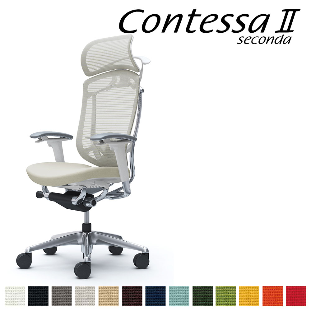 オカムラ コンテッサ セコンダ CC88BZ CC88XZ 大型固定ヘッドレスト フレーム:ポリッシュ ボディ:WH 座クッション アジャストアーム ランバーサポート付 ハンガー付 291,390 ~