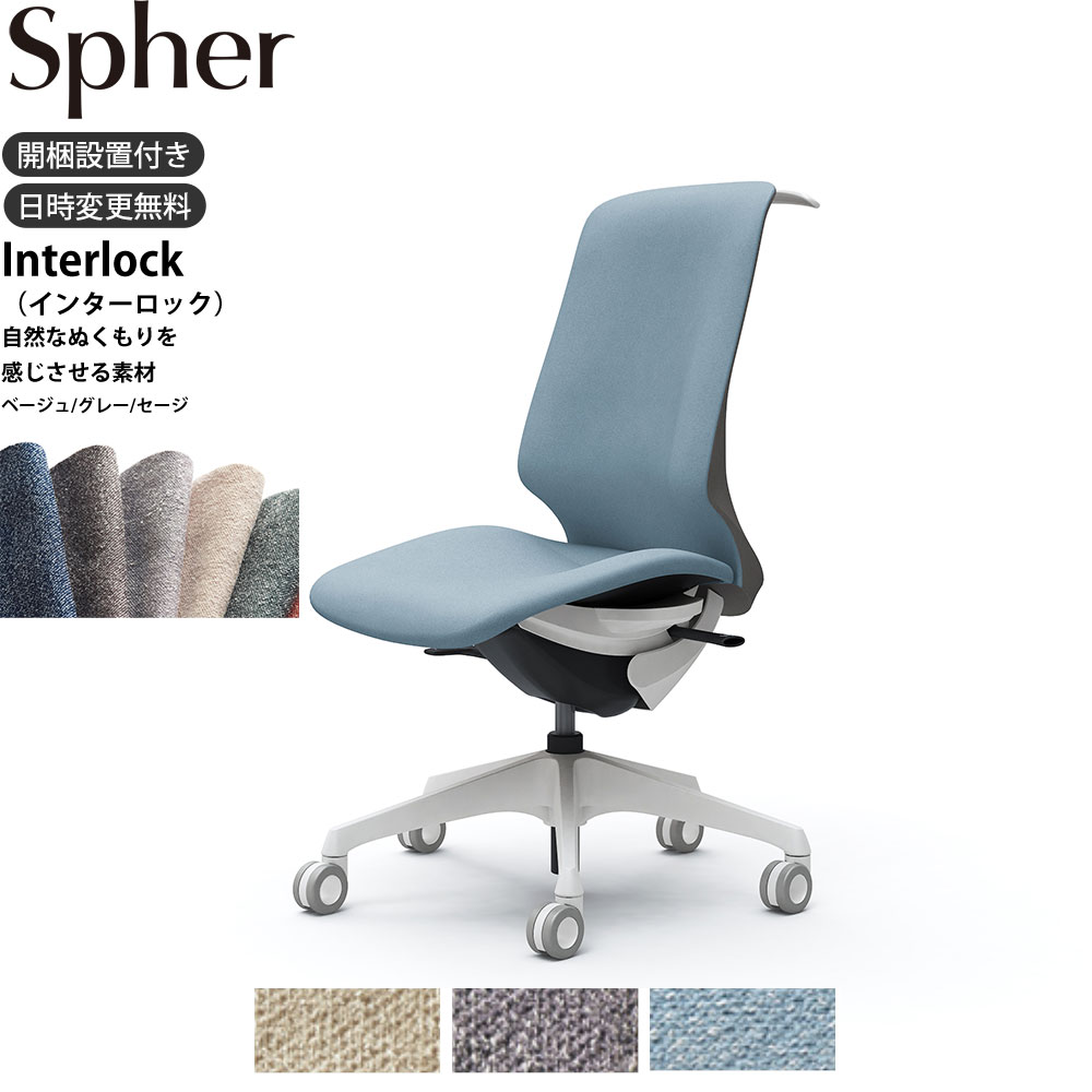 オカムラ スフィアチェア CT1DFC 肘なし ハイバック 座面奥行調整なし ボディ:ホワイト 生地:インターロック ホローウレタンキャスター ハンガーあり 120,780 ~