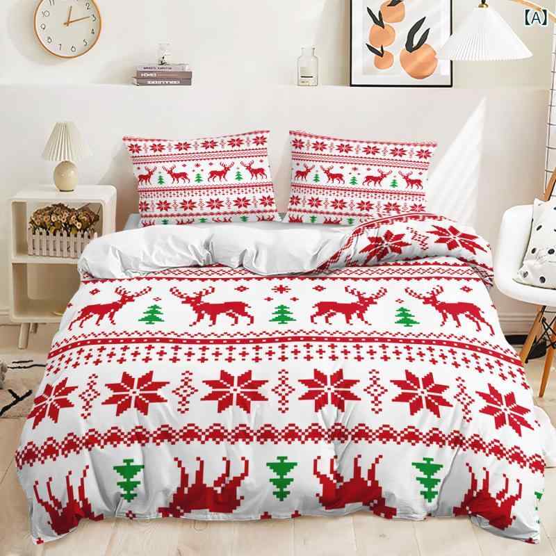 寝具 掛け布団カバー 枕カバー クリスマス柄 3Dデジタルプリント ポリエステル ピーチスキン キャラクターデザイン かわいい 寝室 インテリア 冬用 心地よい 5,573 ~