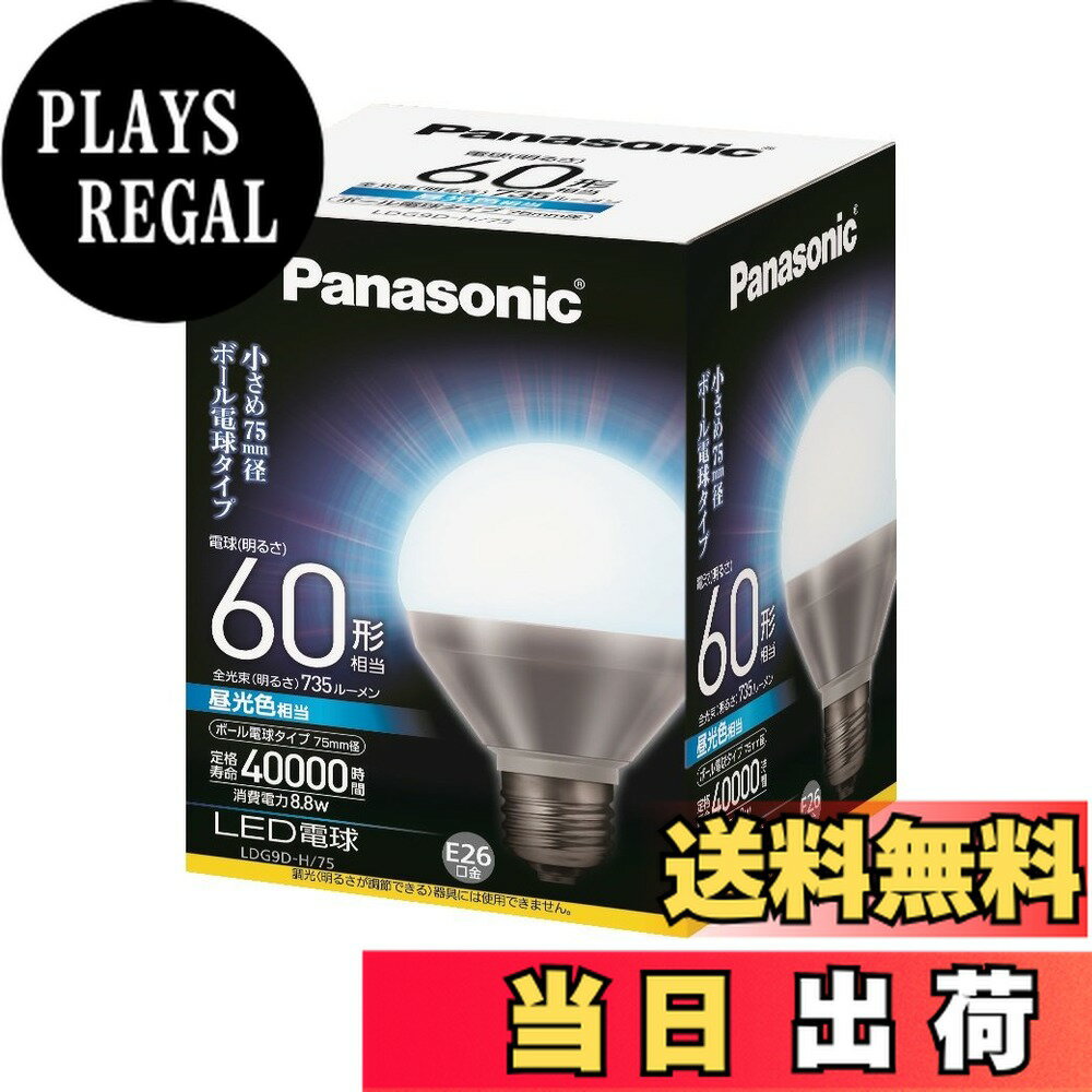 商品情報商品の説明商品の説明 ●メーカー:パナソニック ●型番:LDG9D-H/75 ●商品名:LED電球 《EVERLEDS エバーレッズ》 ボール電球形 ●種別:ボールタイプ 8.8W ●光色:昼光色相当 ●口金:E26 ●周波数:50/60Hz共用 ●定格電圧:100V ●定格入力電流:0.146A ●全光束 (ランプ単体の明るさ):735lm 電球60W形相当 ●発光効率:83.5lm/W ●定格消費電力:8.8W ●密閉型器具対応 ●色温度:6700K ●寸法:外径-75mm/長さ-106mm ●質量:125g ●定格寿命:40000時間 ※寿命は、光束が70%に低下するまでの時間です。 表示は設計寿命であり、製品の寿命をするものではありません。 ※調光機能のついた電球器具や回路、非常用照明器具、誘導灯器具、水銀灯器具などではご使用いただけません。 ボール電球タイプ ボール電球からの取替えに 昼光色相当 文字をはっきりと見せるので書斎や勉強部屋に ※写真はイメージ 口金のサイズはE26 口金のサイズは、取り付け口に合ったサイズをお選びください 密閉型器具対応 パナソニックのLED電球はすべて密閉型器具で使用可能 ※器具の種類によって使用できない場合がある主な仕様 サイズ:10.6×7.5cmbr本体重量:0.125Kgbr生産国:中国定格電圧(周波数):100V(50/60Hz共用)定格消費電力:8.8Wbr定格寿命:40000時間(定格寿命は平均値であり、値ではありません。 )光色:昼光色相当、全光束 (ランプ単体の明るさ)=電球60W形相当 735 lm、発光効率=83.5 lm/W、色温度=6700Kbr定格入力電流:0.146A、口金直径26mmbr密閉型器具対応:○(器具の種類によっては使用できない場合があります。 浴室では、必ず防湿器具でご使用ください。 ) 【送料無料】パナソニック LED電球 E26口金 一般電球・ボール電球タイプ 色:昼光色、サイズ:75mm径 4,860 ~