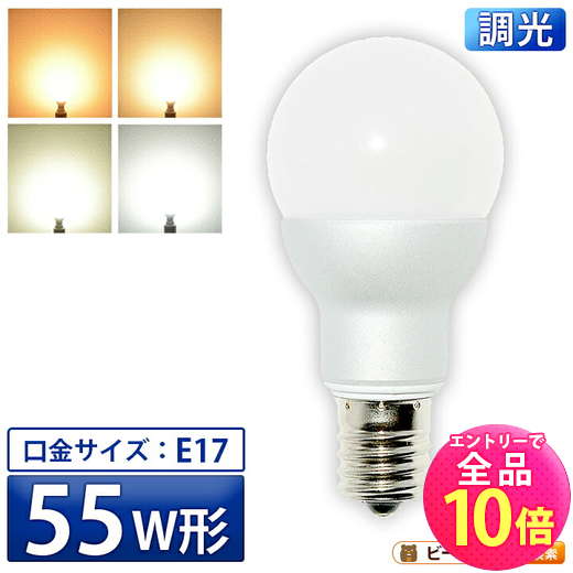 ・メーカー希望小売価格はメーカーサイトに基づいて掲載しています【仕様】口金:E17消費電力:4.8W定格電圧(周波数):AC100V(50/60Hz)色温度:濃い電球色 / 電球色 / 白色 / 昼光色全光束:濃い電球色 460lm / 電球色 470lm / 白色 500lm / 昼光色 520lm配光角:300度演色性:Ra80以上サイズ(約):φ40*80mm重量(約):40g素材:アルミニウム・PC調光機能:○密閉器具:×ホタルスイッチ:○防塵・防水等級:IP20電源:内蔵定格寿命:40000時間保証期間:1年間商品コード:LB9717HD / LB9717AD / LB9717ND / LB9717CD2026/03/05 更新▼ 関連商品はこちら ▼ >>単品販売のページを見る★現在ご覧のページです★ >>50個セットのページを見る>>調光無しモデルのページを見る※ お買い物の際の注意事項は、会社概要(お買い物ガイド)を必ずご確認ください ※ 【P10倍以上!エントリー必須】LED電球 E17 ミニクリプトン 55W 相当 300度 調光器対応 高演色 濃い電球色 460lm 電球色 470lm 白色 500lm 昼光色 520lm LB9717D ビームテック 1,094 ~