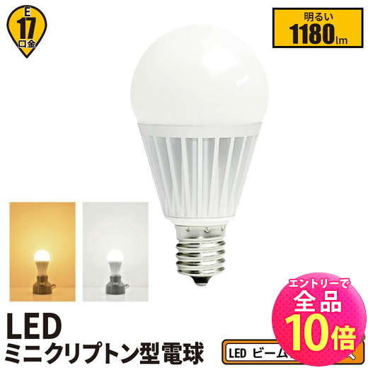 ・メーカー希望小売価格はメーカーサイトに基づいて掲載しています【仕様】口金:E17消費電力:7.2W定格電圧(周波数):AC100V(50/60Hz)色温度:電球色 / 昼白色全光束:1100lm配光角:180度演色性:Ra80以上サイズ(約):φ44.4*80.8mm重量(約):35g素材:アルミニウム・PC調光機能:×密閉器具:×ホタルスイッチ:○防塵・防水等級:IP20電源:内蔵定格寿命:30000時間保証期間:14日間(初期不良のみ)商品コード:LB9917A-S / LB9917Y-S---※2020年07月28日より保証期間が14日間(初期不良のみ)となります※製品保証の内容を調整することで、部材・輸送費の高騰に伴う価格変動を、最小限にいたしました2026/03/05 更新▼ 関連商品はこちら ▼ >>単品販売のページを見る >>4個セットのページを見る >>10個セットのページを見る★現在ご覧のページです★ ※ お買い物の際の注意事項は、会社概要(お買い物ガイド)を必ずご確認ください ※ 【P10倍以上!エントリー必須】10個セット LED電球 E17 ミニクリプトン 180度 電球色 1100lm 昼白色 1100lm LB9917-S--10 ビームテック 7,368 ~