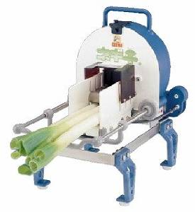 メーカー 千葉工業所 商品カテゴリ 調理器具>スライサー・カッター 発送目安 1日〜2日以内に発送予定(土日祝除) お支払方法 銀行振込・クレジットカード 送料 送料無料 特記事項 その他 ●幅×奥行×高さ(mm):380×240×360●質量(kg):4 ◆ ●投入口:40×60●高速回転の丸刃が素早くネギをとらえ切れ味抜群。 ●青ネギは勿論のこと白ネギ、ニラも大変よく切れます。 ●三段階の厚みが任意に選べる送り装置付。 ●内部が簡単に洗浄できる洗浄口を採用。 ●丸刃は、付属の専用研磨機で簡単研磨。 ●はす切り装置【CNG05】(オプション):を使用すると松葉切り(しらがネギの代わりに):、はす切りができます。 ※Q&A■送り装置について1.投入口のウェートを持ち上げる。 2.ウェートとコンベアーの間にネギを差し込む。 (なるべく奥まで):3.ジョイントワイヤーを厚み調整の任意の番号にセットする。 スイッチを押す(電動):またはハンドルを回す(手動):とネギが自動に送り込まれ設定した厚みにネギが切れます。