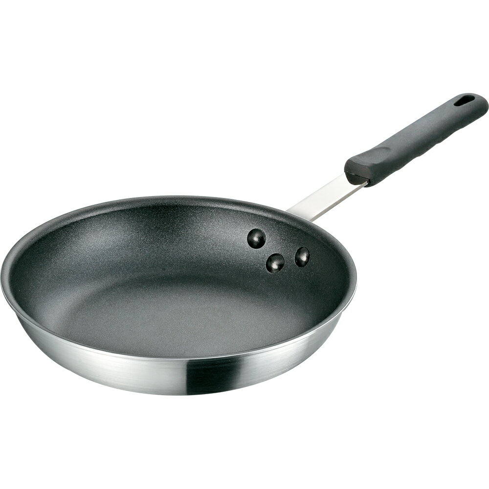 サイズ:深さ45mm底板厚:2.5mm コーティングだけでなくベースが3層鋼(アルミ)クラッド材でIHに非常に適しています。 更に総板厚も2.5mmと非常に厚く熱伝導とその均一性に非常に優れています。 堅く耐熱温度が高いという特性をもつセラミックをフッ素コートのような凹凸状に塗布しました。 これによりセラミックの特徴である耐熱温度と堅さに加えフッ素コートのような離形性(ノンスティック性)を合わせ持つ究極のフライパンが完成しました。 更にこのコーティングは高度で特殊な方法で塗布しているため粒子の結びつきが強くフッ素コーティングでは使用厳禁である金属のヘラやタワシで擦っても剥がれにくいという驚異の耐摩耗性を誇ります。
