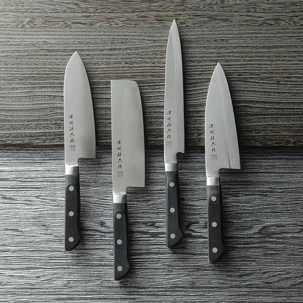 商品説明★ 濃州孫六作の伝統を受け継いで1丁ずつ作られた包丁です。 伝統的な梨地模様の古流仕上げの包丁です。 スペック* サイズ:-* 本体重量:約535g* 材質:ステンレス刃物鋼、柄:黒色積層強化木* セット内容:三徳包丁(刃渡17cm)・菜切包丁(刃渡16cm)・出刃包丁(刃渡15.5cm)・刺身包丁(刃渡20.5cm)×各1* 原産国:日本 04202605 200K 濃州孫六作 古流梨地包丁4点セット 13,780 ~