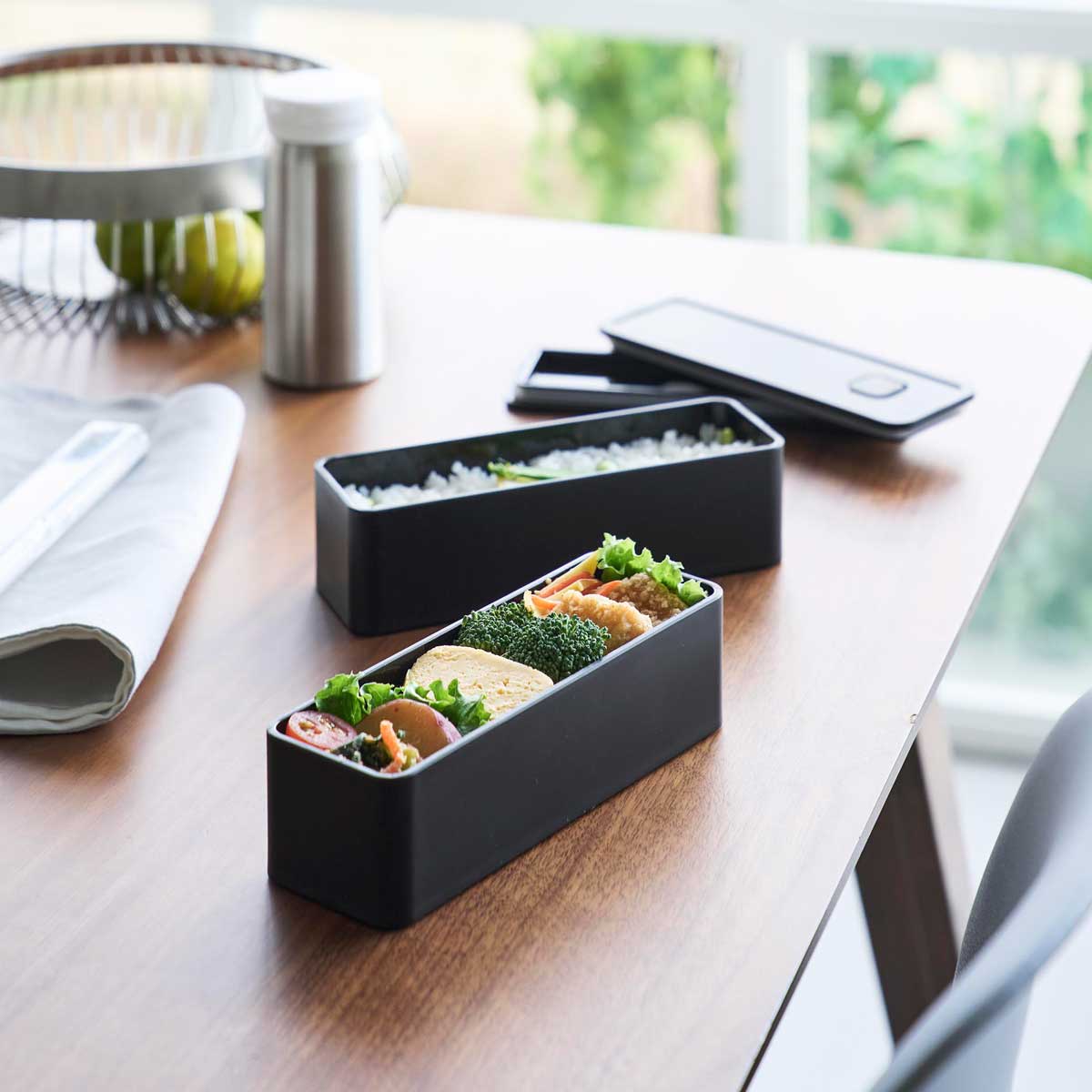 食洗器、電子レンジ対応で便利! バルブとパッキン付きで密封されるので食材の乾燥を防ぐランチボックス、TOWER バルブ付き密封ランチボックス。 バルブをワンプッシュで簡単密封。 パッキン付きで汁もれしにくい構造がうれしい。 食材の保存容器としても使えるランチボックスです。 デザインと機能が定評のタワー! 機能性はもちろん、そのデザイン性も人気のタワーシリーズより、パーツはすべて分解して洗えて衛生的な「タワー バルブ付き密封ランチボックス」。 TOWERのシンプルなフォルムはどんなインテリアにも相性が良く、空間をスタイリッシュに飾ります。 商品の情報 ・ブランド:YAMAZAKI(山崎実業)/日本 ・ジャンル:ランチボックス ・主な素材:ポリプロピレン(本体、蓋、仕切り板)/シリコーン(パッキン、バルブ) ・生産国:中国 ・サイズ:約W147xD92xH50mm(本体)/約W135xD80xH35mm(内寸) ・重量:約160g ・内容量:約400ml(蓋をした時) ・耐熱温度:140℃ ・耐冷温度:-40℃ この商品の仲間たち 山崎実業 TOWER バルブ付き密封ランチボックス ホワイト 山崎実業 TOWER バルブ付き密封ランチボックス ブラック 弁当箱 YAMAZAKI tower バルブ付き密封ランチボックス パッキン付きで汁漏れもしにくい! ミニサイズ 小さめ 食洗器 電子レンジ対応 ランチボックス 山崎実業 タワー ブラック 1,100 ~