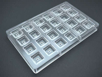 こちらの商品は1個単位での販売となります。 [規格]外寸:175X275×H26mm ポリカーボネイトイタリアのプロ用製菓器具の老舗メーカーである、マルテラート社のチョコレートモールド。 ポリカーボネイト製で柄や形がよりハッキリ出ます。 1枚で24個取れます。 一粒30×30 h12mm ポリカーボネイトチョコレートモールド MA1606 9,640 ~