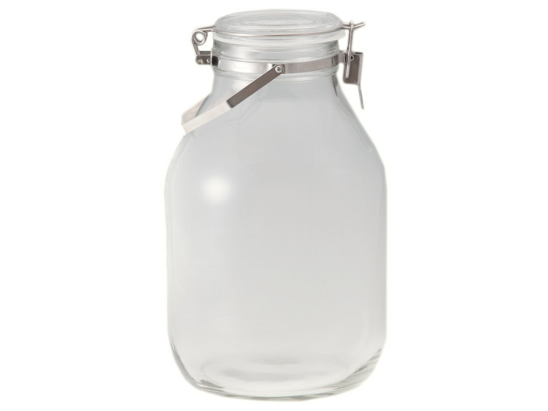 こちらの商品は1個単位での販売となります。 [規格]直径175×H295mm [容量]4L [素材]本体:ソーダライムガラス、パッキン:シリコン、金具:ステンレス優れた密閉性と持ち運びに便利な取っ手付き密封びんです。