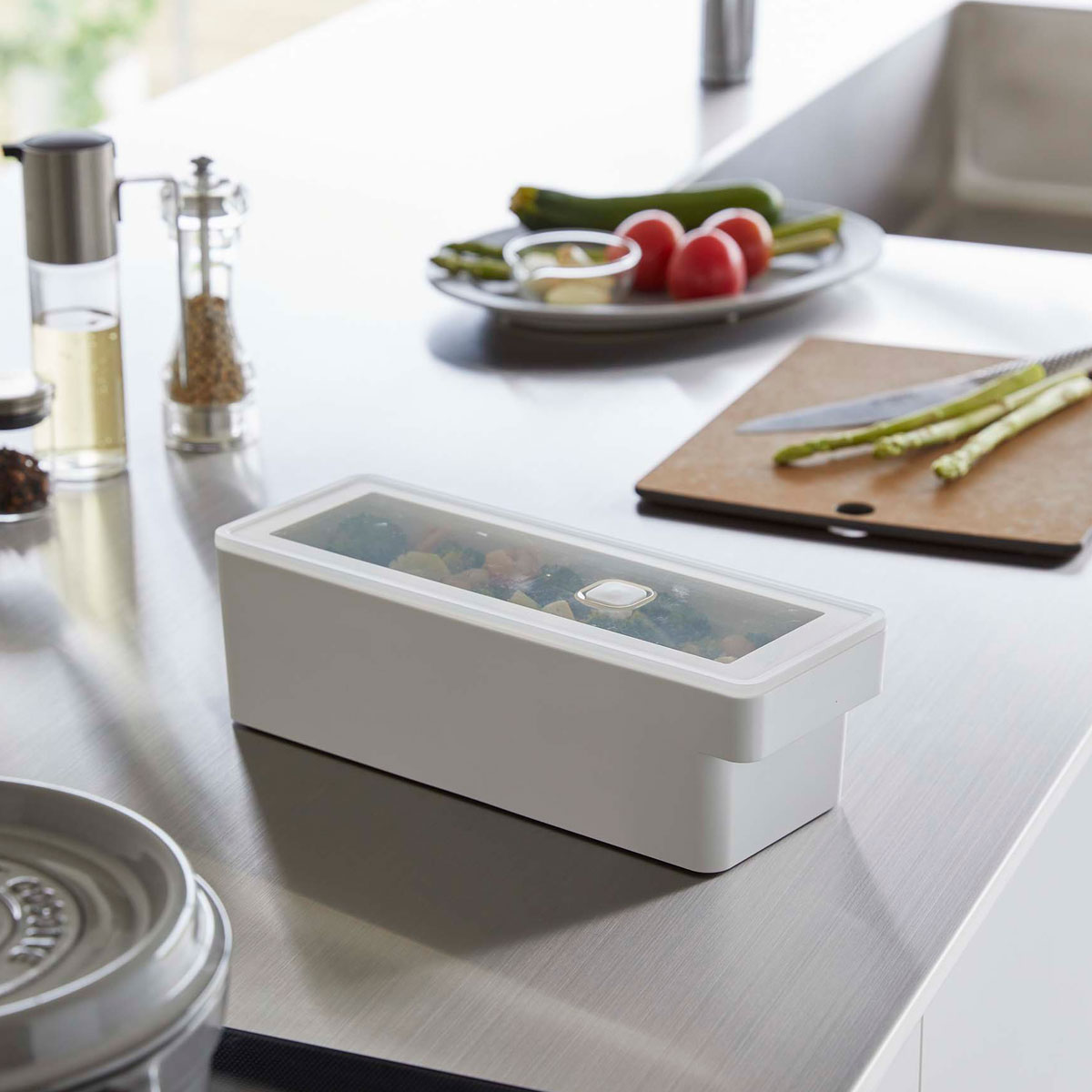 冷蔵庫の奥行きを無駄なく有効活用! ハンドル付きで出し入れしやすい、奥まで使える密閉バルブ付きフードコンテナ。 冷蔵庫内を整理しやすい奥行ワイド、幅スリム設計です。 冷蔵庫の奥行きを無駄なく使い、スリムなので場所もとりません。 スタッキングにも対応しています。 食洗機、電子レンジ、冷凍庫に対応! バルブをワンプッシュで簡単に密閉できます。 約1500mLの大容量なので作り置き保存に最適です。 パーツはすべて分解して洗うことができるので衛生的。 食洗器・電子レンジに対応。 冷凍庫でも使用できます。 商品の情報 ・ブランド:YAMAZAKI(山崎実業)/日本 ・ジャンル:フードコンテナ ・主な素材:ポリプロピレン(容器、蓋)/シリコーン(パッキン、バルブ) ・生産国:中国 ・サイズ:約W100xD275xH84mm(本体)/約W90xD250xH65mm(内寸) ・重量:約310g ・容量:約1500ml ・耐熱温度:120℃ ・耐冷温度:−40℃ ・対応サイズ:冷蔵庫棚の奥行約26cm以上 ・その他:食洗機対応可/レンジ対応可 この商品の仲間たち 正規品 TOWER タワー 奥まで使えるハンドル付き密閉フードコンテナ ホワイト 正規品 TOWER タワー 奥まで使えるハンドル付き密閉フードコンテナ ブラック フードストッカー 山崎実業 正規品 tower タワー 奥まで使えるハンドル付き密閉フードコンテナ 食洗機、電子レンジ、冷凍庫に対応! ワンプッシュ 密閉 保存容器 長い 奥行き フードコンテナ フードコンテナー ホワイト 1,980 ~