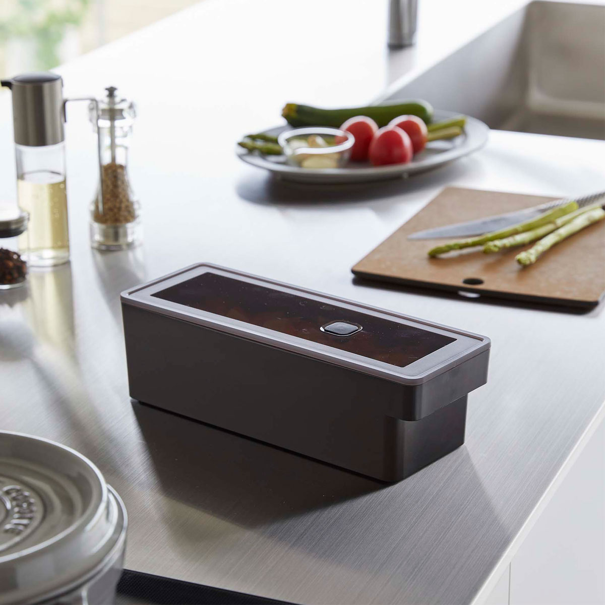 冷蔵庫の奥行きを無駄なく有効活用! ハンドル付きで出し入れしやすい、奥まで使える密閉バルブ付きフードコンテナ。 冷蔵庫内を整理しやすい奥行ワイド、幅スリム設計です。 冷蔵庫の奥行きを無駄なく使い、スリムなので場所もとりません。 スタッキングにも対応しています。 食洗機、電子レンジ、冷凍庫に対応! バルブをワンプッシュで簡単に密閉できます。 約1500mLの大容量なので作り置き保存に最適です。 パーツはすべて分解して洗うことができるので衛生的。 食洗器・電子レンジに対応。 冷凍庫でも使用できます。 商品の情報 ・ブランド:YAMAZAKI(山崎実業)/日本 ・ジャンル:フードコンテナ ・主な素材:ポリプロピレン(容器、蓋)/シリコーン(パッキン、バルブ) ・生産国:中国 ・サイズ:約W100xD275xH84mm(本体)/約W90xD250xH65mm(内寸) ・重量:約310g ・容量:約1500ml ・耐熱温度:120℃ ・耐冷温度:−40℃ ・対応サイズ:冷蔵庫棚の奥行約26cm以上 ・その他:食洗機対応可/レンジ対応可 この商品の仲間たち 正規品 TOWER タワー 奥まで使えるハンドル付き密閉フードコンテナ ホワイト 正規品 TOWER タワー 奥まで使えるハンドル付き密閉フードコンテナ ブラック フードストッカー 山崎実業 正規品 tower タワー 奥まで使えるハンドル付き密閉フードコンテナ 食洗機、電子レンジ、冷凍庫に対応! ワンプッシュ 密閉 保存容器 長い 奥行き フードコンテナ フードコンテナー ブラック 1,980 ~