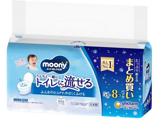 【マラソン限定2000円クーポン★ポイント2倍16日9:59迄】ユニ・チャーム ムーニーおしりふき トイレに流せる 替 54枚×8個 おしりふき オムツ ベビーケア 1,422 ~