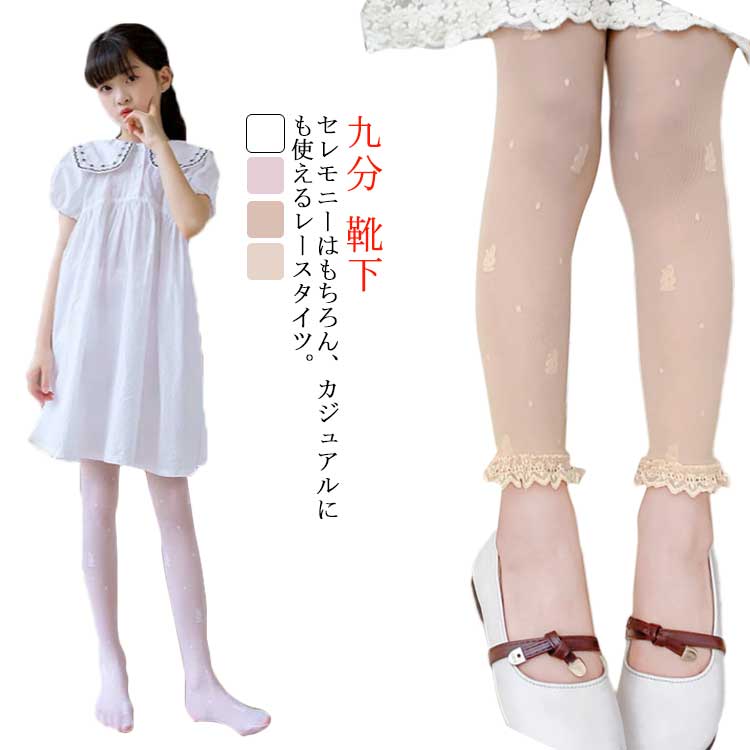 送料無料 子供用 タイツ フォーマル 発表会 卒業式 七五三 白 キッズ コンクール レースタイツ 九分 入学式 くつ下 卒園式 入園式 靴下 女の子 ホワイト 結婚式 幼稚園 網タイツ ネットタイツ 柄タイツ 1,745 ~