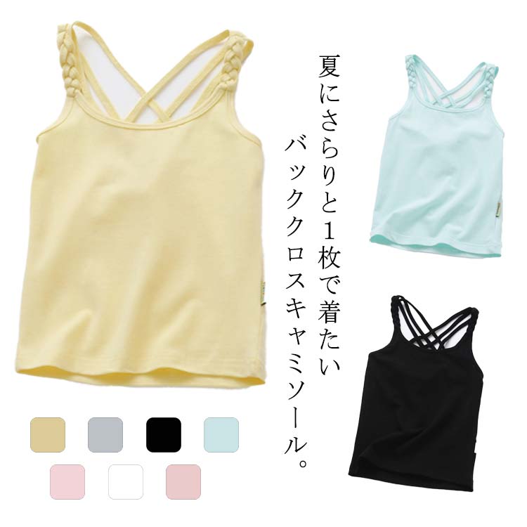夏にさらりと1枚で着たいバッククロスキャミソール。 ストレッチ性バツグンで動きにしっかりフィットしてくれます。 シンプルな無地デザインがどんなお服にも合わせられ馴染みやすい。 カットソー素材を使用しているので、ストレスなく着用できます。 カラー別で何枚持っても着回ししやすい便利なアイテムです。 サイズ90 100 110 120 130 140 150 160 170サイズについての説明90:バスト42cm 着丈38cm/ 100:バスト47cm 着丈40cm/ 110:バスト49cm 着丈43cm/ 120:バスト53cm 着丈45cm/ 130:バスト57cm 着丈46cm/ 140:バスト61cm 着丈53cm/ 150:バスト65cm 着丈55cm/ 160:バスト69cm 着丈58cm/ 170:バスト73cm 着丈61cm/ ※サイズ表の実寸法は商品によって1-3cm程度の誤差がある場合がございます。 素材綿混色ホワイト ライトピンク イエロー グレー ブラック ミント ダークピンク備考 ●サイズ詳細等の測り方はスタッフ間で統一、徹底はしておりますが、実寸は商品によって若干の誤差(1cm〜3cm )がある場合がございますので、予めご了承ください。 ●製造ロットにより、細部形状の違いや、同色でも色味に多少の誤差が生じます。 ●パッケージは改良のため予告なく仕様を変更する場合があります。 ▼商品の色は、撮影時の光や、お客様のモニターの色具合などにより、実際の商品と異なる場合がございます。 あらかじめ、ご了承ください。 ▼生地の特性上、やや匂いが強く感じられるものもございます。 数日のご使用や陰干しなどで気になる匂いはほとんど感じられなくなります。 ▼同じ商品でも生産時期により形やサイズ、カラーに多少の誤差が生じる場合もございます。 ▼ キャミソール 女の子 下着 肌着 子供服 トップス インナー レイヤード 無地 ノースリーブ バッククロス 見せキャミ タンクトップ 送料無料 コットン カジュアル ナチュラル シンプル ワンマイルウェア 薄手 涼しい おしゃれ 2,059 ~