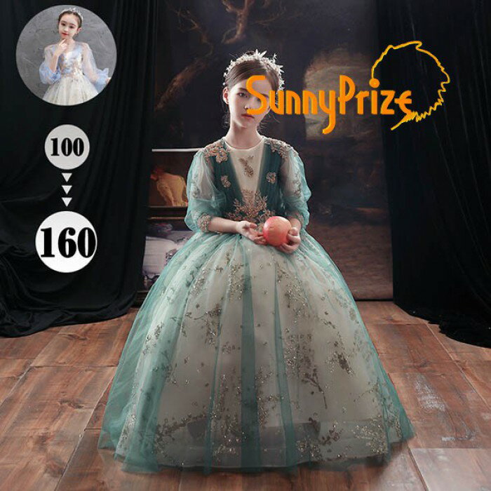 キッズドレス 90 パフスリーブ ラメ 女の子 ワンピース パール 子供服 レース フリル フォーマルワンピース チュール 結婚式 プリンセス ピアノ 発表会 キッズドレス グリーン ドレス 緑 ボリュームスカート 100 七五三 110 120 130 140 150 3,320 ~