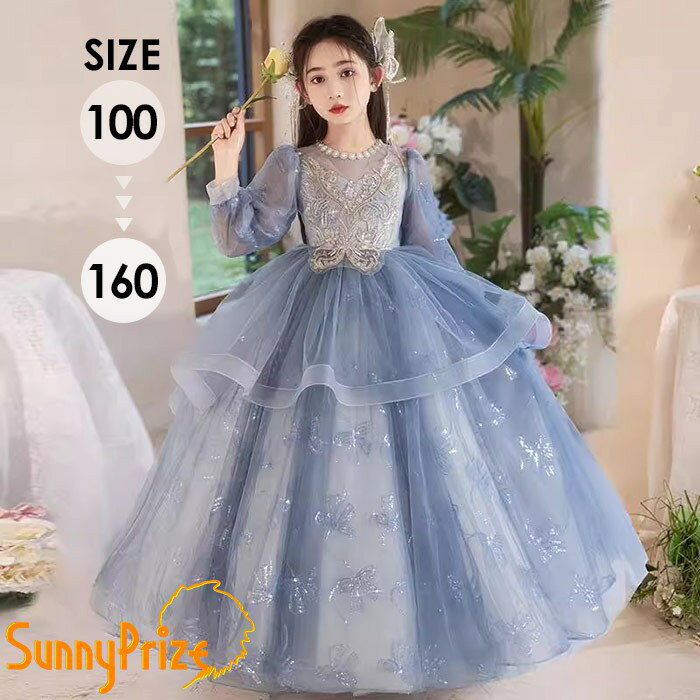 入学式 リングガール ドレス キッズ 表彰式 七五三 キッズドレス フォーマル 結婚式 女の子 プリンセス ワンピース チュール 子供ドレス ピアノ発表会 子供 高級感 可愛い 長袖 ドレス 卒園式 式典 フラワーガール 子ども ブルー 3,740 ~