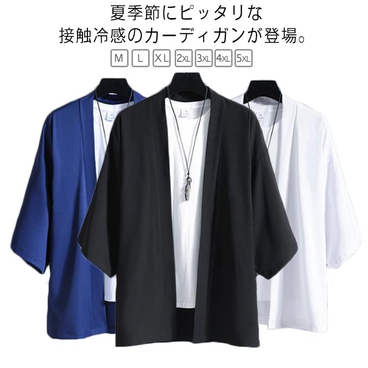 カーディガン 七分袖 メンズ サマーカーディガン 和風 羽織 トップス ファッション 春 夏 ロング 大きいサイズ ゆったり ジャケット オーバーサイズ 送料無料 無地 5,310 ~