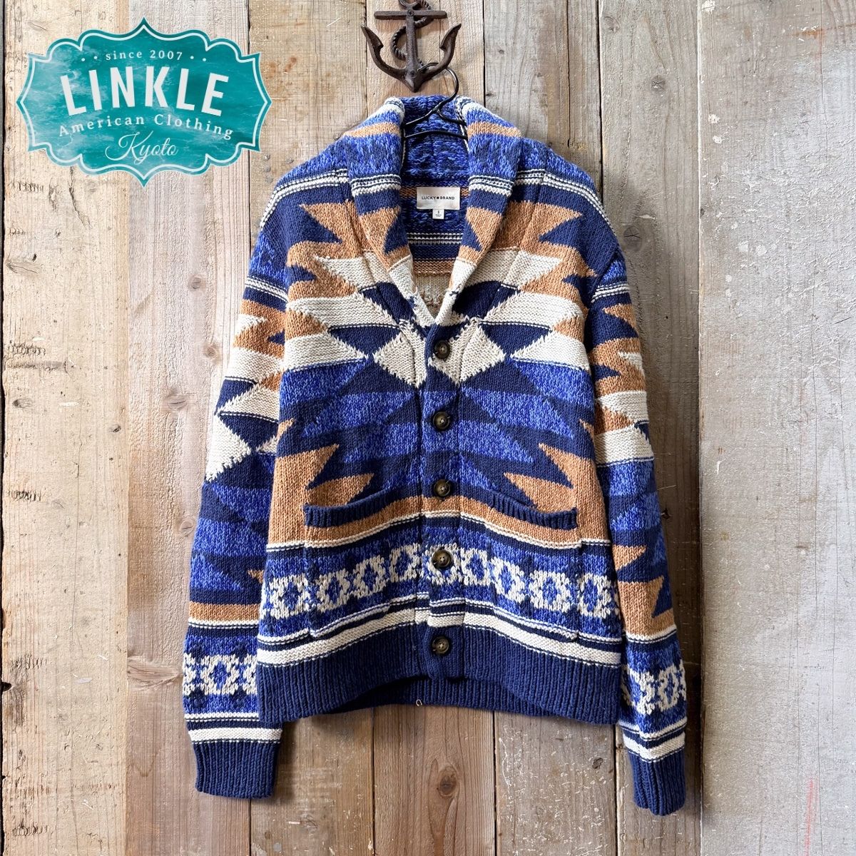 Linkle-リンクル- American Clothing Store 創業2007年、独自のセンスを活かし アメリカで自社にて厳選買い付けしております。 毎月アメリカより新入荷もあり、 他では見ないような面白いラインナップを目指しております。 当店営業日13時までのご注文で 即日出荷!! 営業時間:11:00-18:00 定休日:営業日カレンダーをご確認くださいませ 京都市内に実店舗もございます! 詳しくは コチラ をご覧ください。 【ひとことアピール】 爽やかなカラーリングのネイティブ柄カーディガン! 【商品コメント】 Lucky Brandより、ネイティブ カーディガンの入荷です。 ざっくりとした編み目のボディは、ずっしりと着ごたえあるカーディガン。 コットンボディとなり、春にも使いやすいカーディガンです。 【コンディション】 新品タグ付き 【生産国】 チャイナ 【素材】 ボディ:コットン100% 【カラー】 マルチ 【サイズ(cm)】 S(肩幅40 身幅50 着丈61cm) 【サイズ感】 海外でよくあるサイズ感に思います。 いつものサイズで問題ないかと思います。 165cm 60kg ややがっちり体型のスタッフ(海外ブランドだとだいたいSサイズ着用)が、Sでちょうどといった感じでした。 【商品につきまして】 ※若干の個体差がある場合もございます。 ※出来る限り実物と色が近くなるよう努力しておりますが、デバイスにより色の見え方が異なる場合もございます。