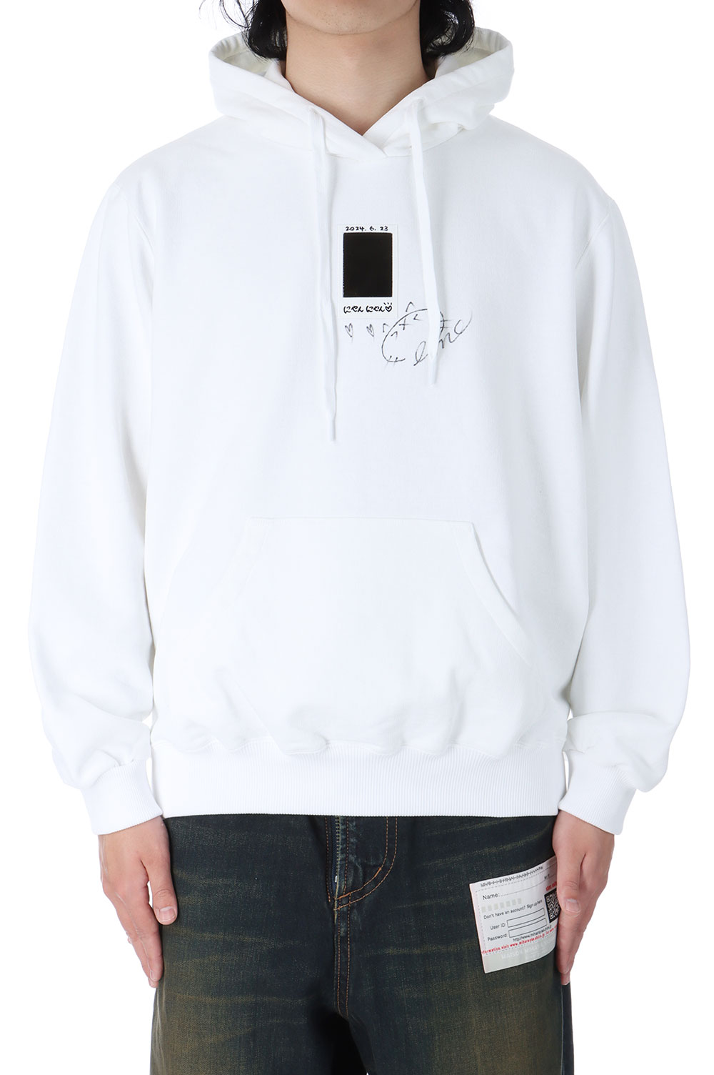 【特別価格】こちらの商品は特別価格のため、返品交換はご遠慮ください。 推し活を全力で楽しむためのこのフーディーは、 リサイクルコットンを100%使用した肉厚な裏毛素材で作られており、 環境に配慮しながらも快適な着心地を楽しめます。 胸元にある推し活の象徴ともいえるチェキに、 写真のフラッシュを当てると、幻のアイドルが浮かび上がります。 さらに、手書きのサインによって、 アイドルとの繋がりをより強く感じることができるでしょう。 推し活を楽しむファンのためのこのフーディーで、 大好きなアイドルと共に過ごす毎日をお楽しみください。 このフーディーが、あなただけの推し活をサポートしてくれたら嬉しいです。 着用者:身長178cm 体重70kg 着用サイズ:M下記のカラーもご用意しておりますBLACK サイズ表 サイズ着丈身幅肩幅袖丈S−−−−M73cm65cm52cm66cmL75cm66cm54cm68cmXL−−−−XXL−−−−商品情報商品名CHEKI RAINBOW-FILM HOODIE - WHITE (25SS32CS368)素材cotton100%取扱ショップ by Intention(バイ インテンション)〒951-8063 新潟市中央区古町通5-587-1 2FTEL:025-229-1240(12時-19時 火曜定休 )Mail:deepinsideinc-store@shop.rakuten.co.jpCHEKI RAINBOW-FILM HOODIE - WHITE (25SS32CS368)doublet(ダブレット) 【P5倍】CHEKI RAINBOW-FILM HOODIE - WHITE (25SS32CS368) doublet(ダブレット) 25,410 ~