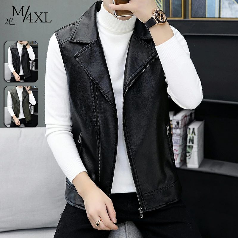 レザーベスト メンズ 秋冬 PUレザー 裏起毛 おしゃれ ライダースベスト ジップアップ 原宿ファッション 革ベスト 大きいサイズ 襟付き バイクウェア ベスト ジャケット 袖なし 防風 防寒 4,853 ~