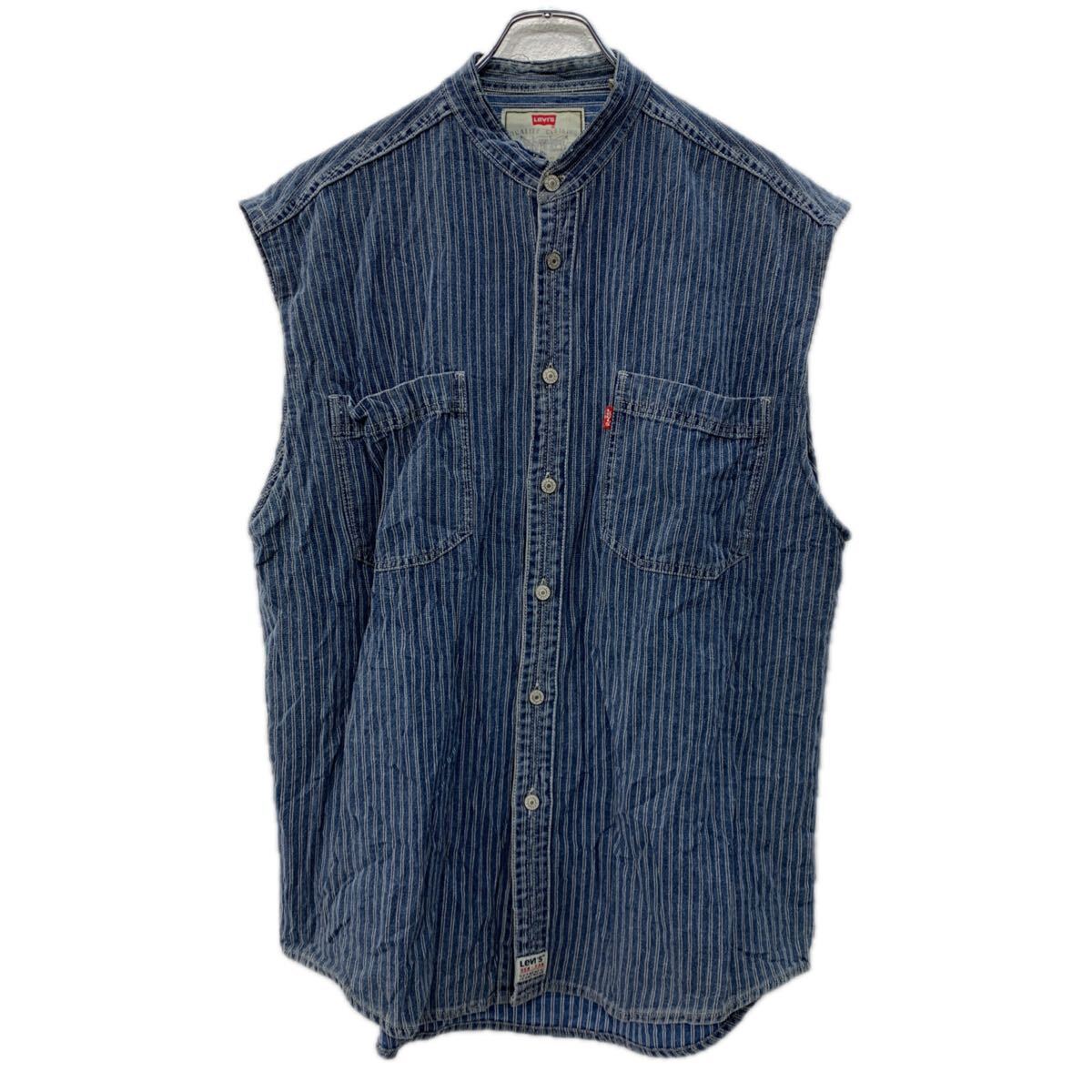 【中古】【古着】 90s Levi's ベスト L ブルー リーバイス ボタン ストライプ 胸ポケット アメカジ カジュアル ボタン デニムベスト 春秋物 a801-6206 3,300 ~