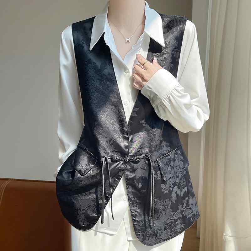 ・タイプ: 開衫・衣長: 普通款 (50cm超65cm以下)・首元: Vネック・生地: サテン・主素材: ポリエステル・主素材含有率: 30%以下・カラー: 白提花,黒提花,ピンク提花,白無地,黒無地,ピンク無地・サイズ: M,L,XL,XXL,XXXL・前立て: シングルボタン・スタイル: カジュアル・シルエット: レギュラー・性別: 女性 無袖ベスト レディース 秋冬 Vネック フロッグボタン 提花柄 リバーシブル サテン生地 チャイナ風 高級感 エレガント 通勤 ビジネス オフィス パーティー フォーマル 6,464 ~