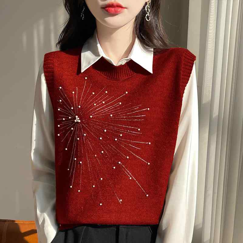 ・着丈: ミディアム(50cm超65cm以内)・襟型: Vネック・柄: 無地・装飾: シークイン・素材: ウール・主素材成分: ウール・色: ホワイト,キャメル,グレー,レッド,ネイビー,ブラウン,ダークグレー,ブラック・サイズ: S,M,L,XL,XXL・スタイル: シンプル・前立て: プルオーバー・主素材含有率: 95%以上・対象年齢: 成人・対象性別: 女性・シルエット: ルーズ・カテゴリ: ベスト 秋冬 レディース ニットベスト 100%羊毛 短丈 無地 ゆったり Vネック 保温 羽織り アウター トップス 暖かみ コーディネート レイヤード 7,621 ~