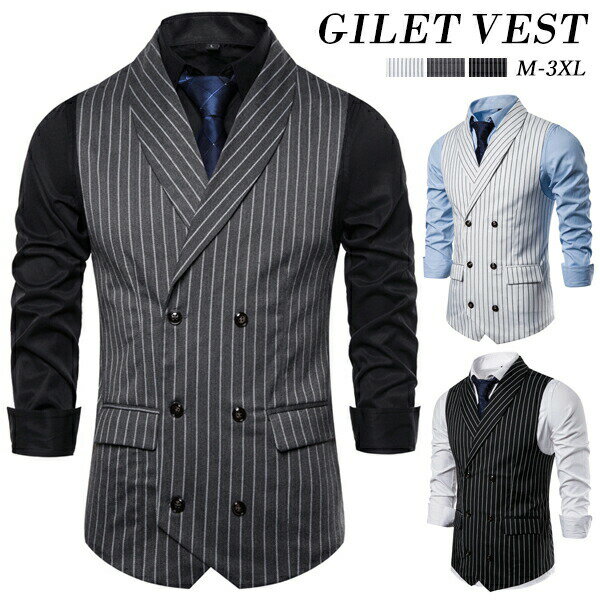 ベスト メンズ ジレー スーツベスト チョッキ フォーマルベスト 紳士服 ビジネス コットン トップス 結婚式 パーティー シャツに似合う ブラック グレー ホワイト 縦縞 スーツ かっこいい スリムフィット カジュアル 演奏会 吹奏楽部 5,040 ~
