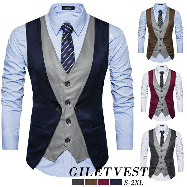 ベスト メンズ ジレー スーツベスト チョッキ フォーマルベスト 紳士服 ビジネス コットン トップス 結婚式 パーティー シャツに似合う コーヒー グレー ブルー ブラック レッド スーツ かっこいい スリムフィット カジュアル 演奏会 吹奏楽部 成人式 4,560 ~